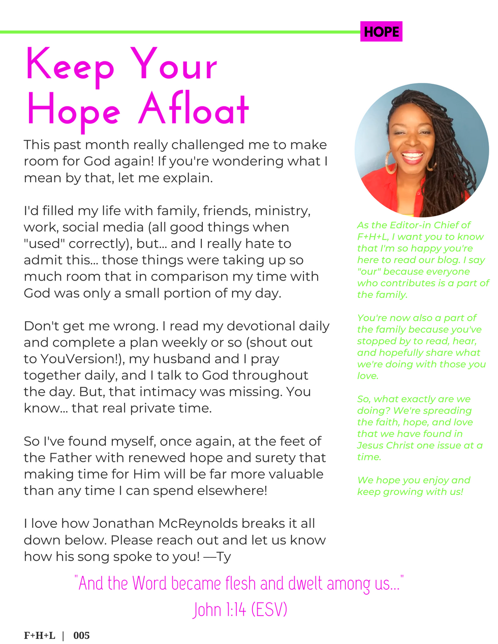 Issue 005: Trusting GodF+H+LMay 28, 20201 min readUpdated: Jun 16, 2023IN THIS ISSUEFAITH: Trusting God with Phylicia L. HenryHOPE: "Make Room"LOVE: Ask AdelaiListen to Phylica Henry's audio response here: www.soundcloud.com/fhlblog